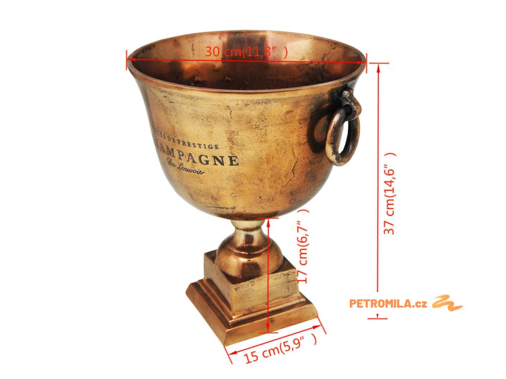 Chladící nádoba na víno je vyrobena z vysoce kvalitního mědi, která je robustní, trvanlivá a odolná. K dispozici je spousta prostoru na led, takže chladič lahví je vynikající pro uchování šampaňského, vína nebo jiných nápojů v chladu. Chladící nádoba na sekt má tvar trofeje a má dvě pohodlné boční rukojeti.