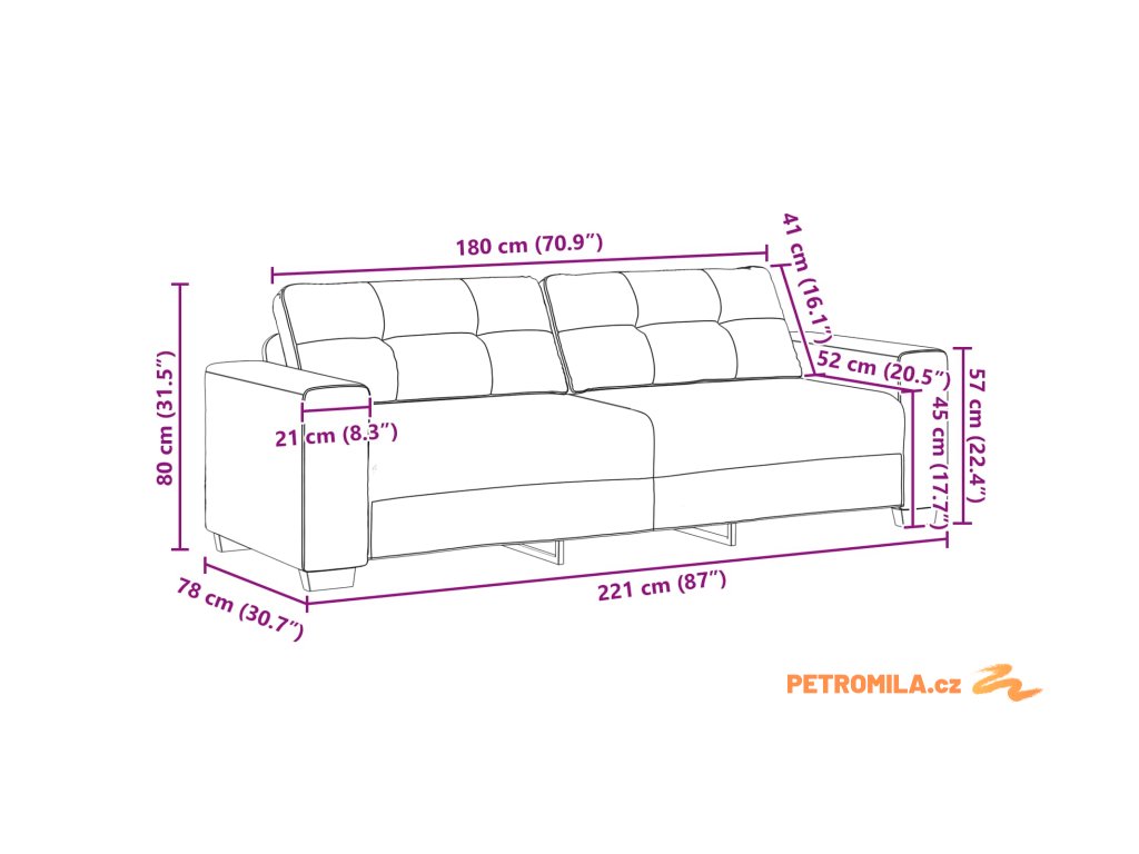 - 1 x pohovka pro 3 osoby: 221 x 78 x 80 cm (ŠxHxV)