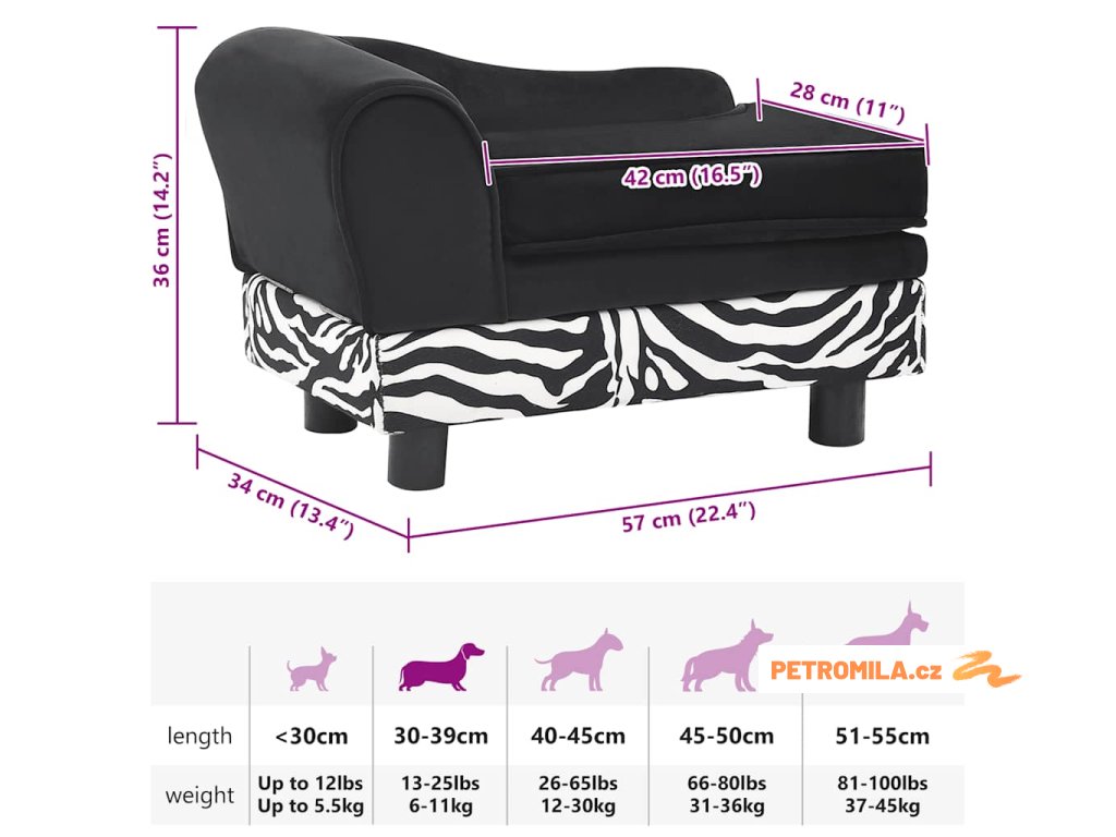 Pohovka pro psy černá 57 x 34 x 36 cm plyš