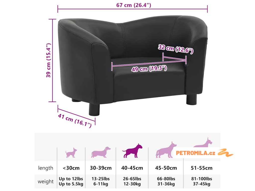 Pohovka pro psy černá 67 x 41 x 39 cm umělá kůže