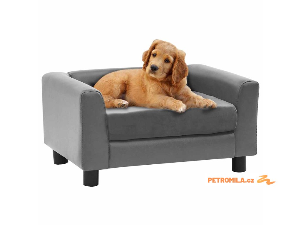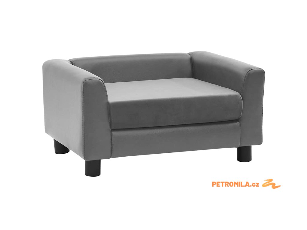 Pohovka pro psy šedá 60 x 43 x 30 cm plyš a umělá kůže