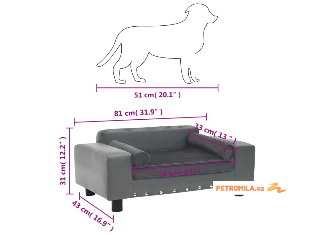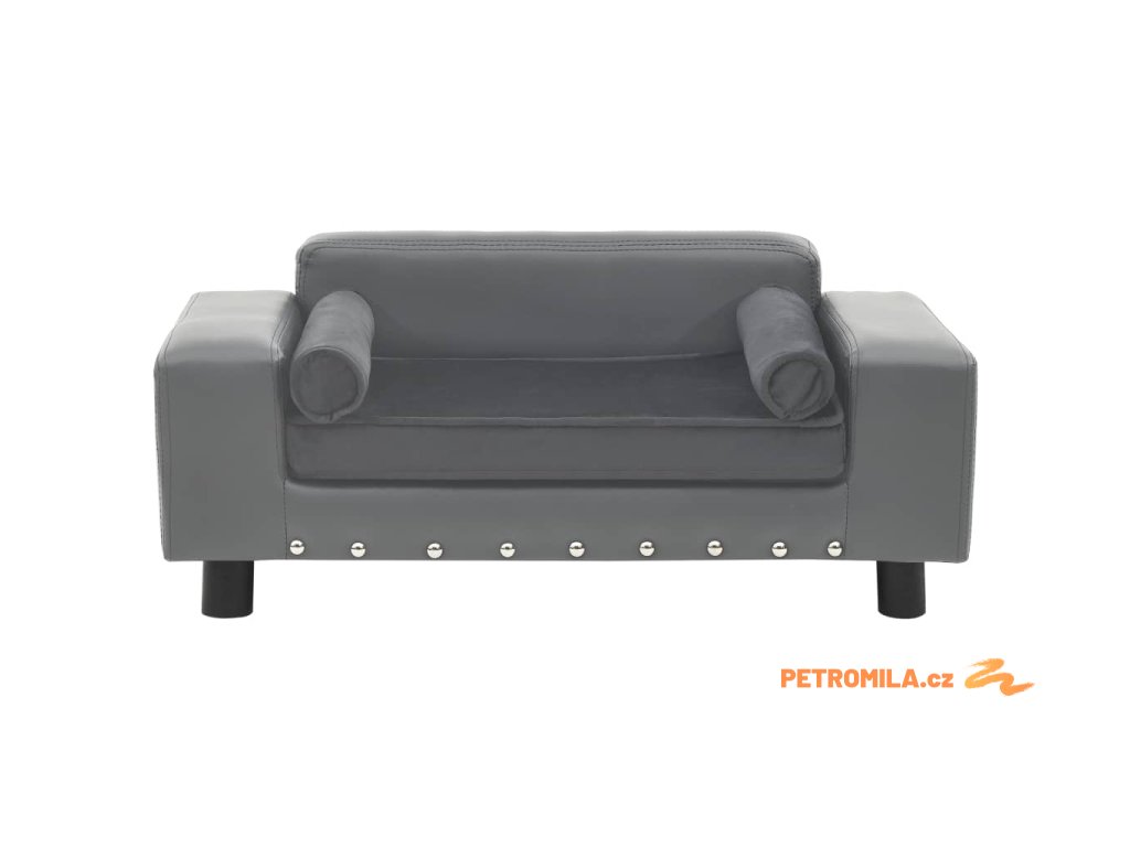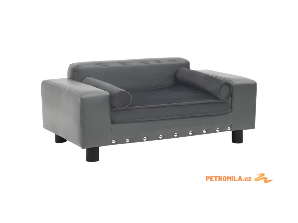 Pohovka pro psy šedá 81 x 43 x 31 cm plyš a umělá kůže
