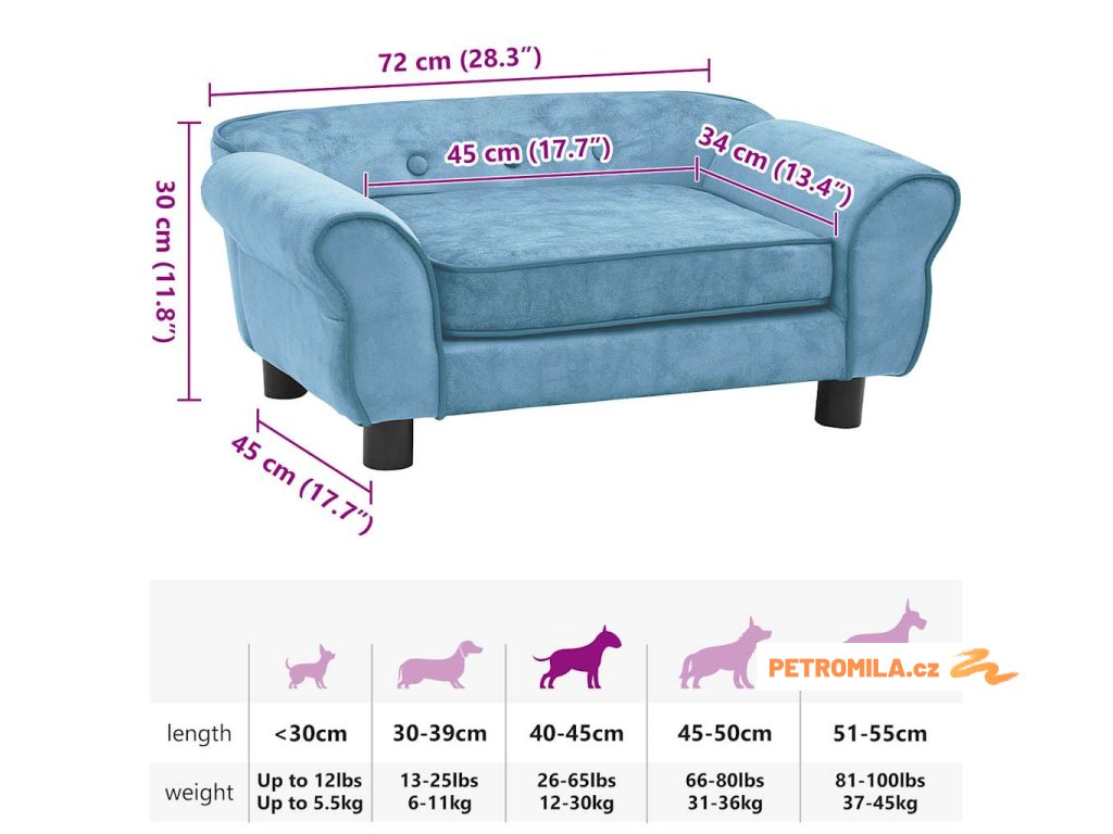 Pohovka pro psy tyrkysová 72 x 45 x 30 cm plyš