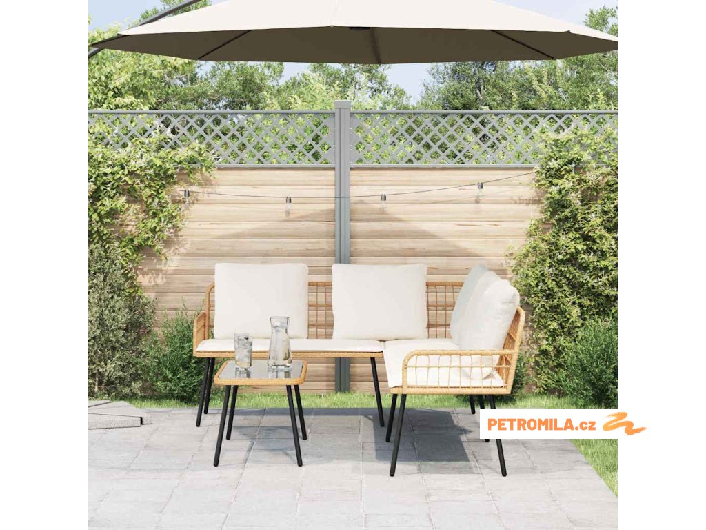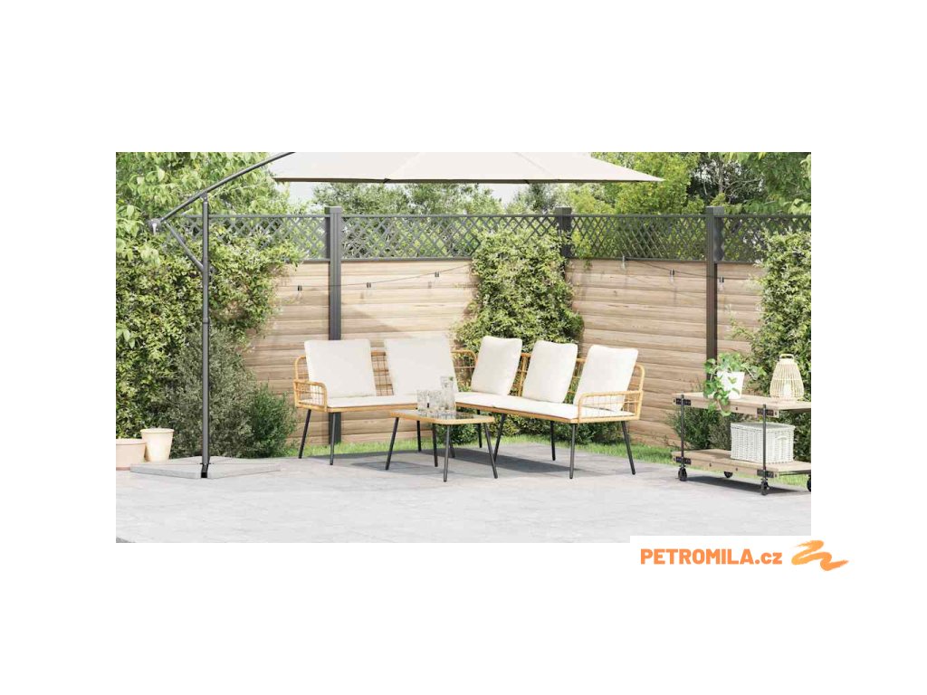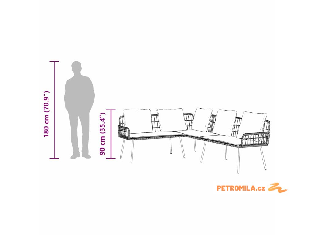 - Materiály: Pohovka je pevně postavená z kovu a kvalitního poly ratanu. Je odolná vůči počasí a vypadá stylově. Obsahuje polyester, ocel, pěnu a netkanou textilii pro extra pohodlí a sílu.