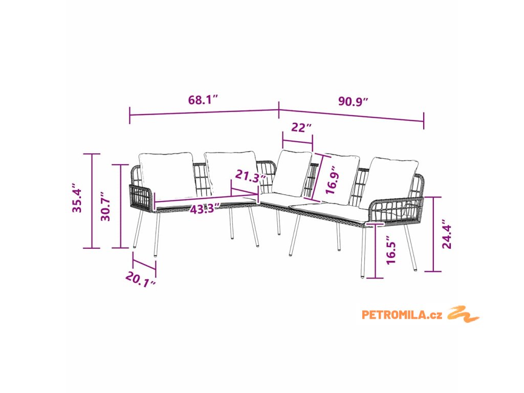 - Součásti: Pohovka má PE Ratanovou L-tvarovanou konstrukci včetně pohodlného polštáře, který pokrývá víc sedadel. Silná podnož zajišťuje stabilitu; je to skvělý doplněk do vaší zahrady nebo na terasu.
