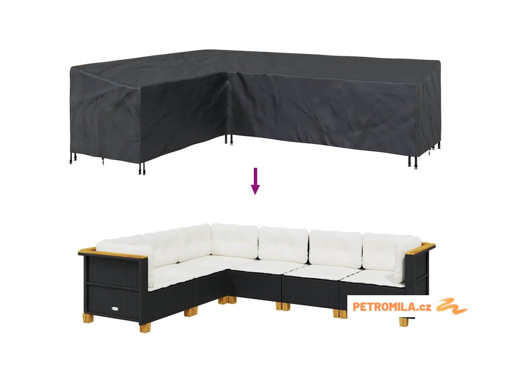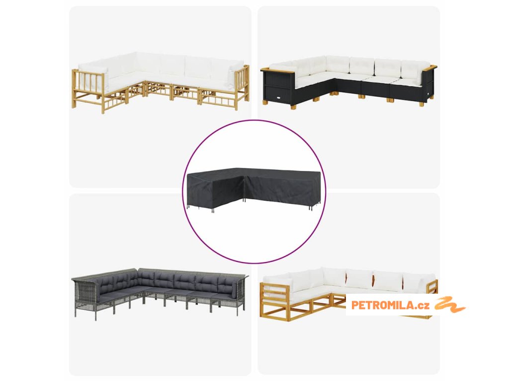 Tento obal ve tvaru L je skvélé spojení stylu a funkčnosti pro ty, kteří chtějí zabezpečit svůj venkovní nábytek. Je to moderní kryt, který se hodí do každé zahrady nebo na terasu, a pomáhá uchovat nábytek v perfektním stavu, ať už je venku jakékoli počasí.