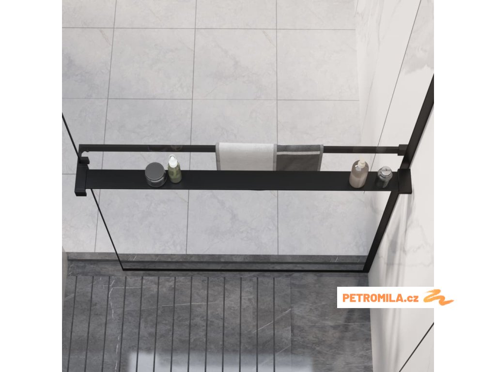 Police na stěnu průchozí sprchy černá 90 cm hliník