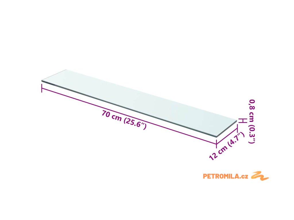 Policové desky 2 ks sklo čiré 70 x 12 cm