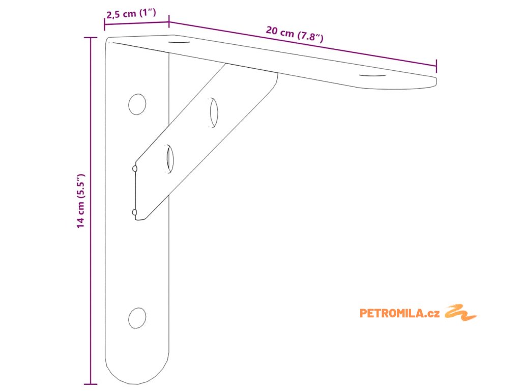 - Snadné použití: Díky předvrtaným otvorům v držáku je možné na něj snadno upevnit polici (není součástí dodávky) a připevnit na stěnu.