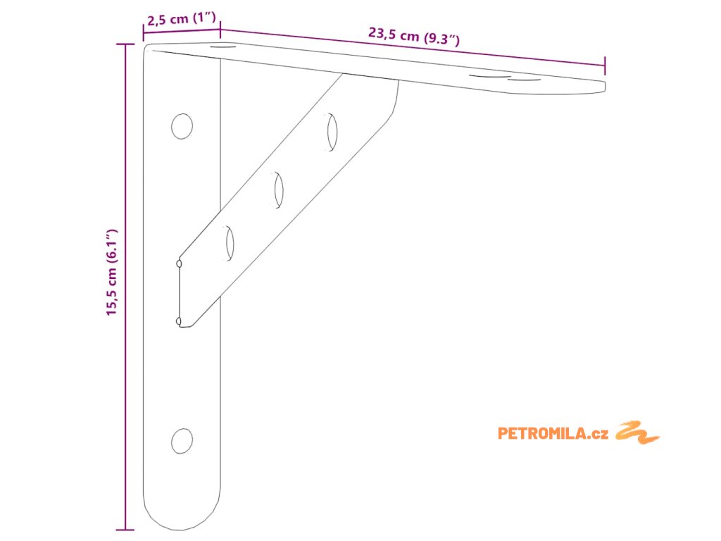 - Snadné použití: Díky předvrtaným otvorům v držáku je možné na něj snadno upevnit polici (není součástí dodávky) a připevnit na stěnu.
