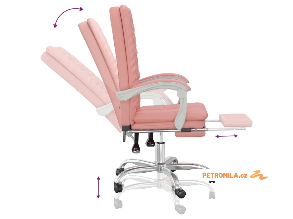 Polohovací kancelářská židle růžová umělá kůže