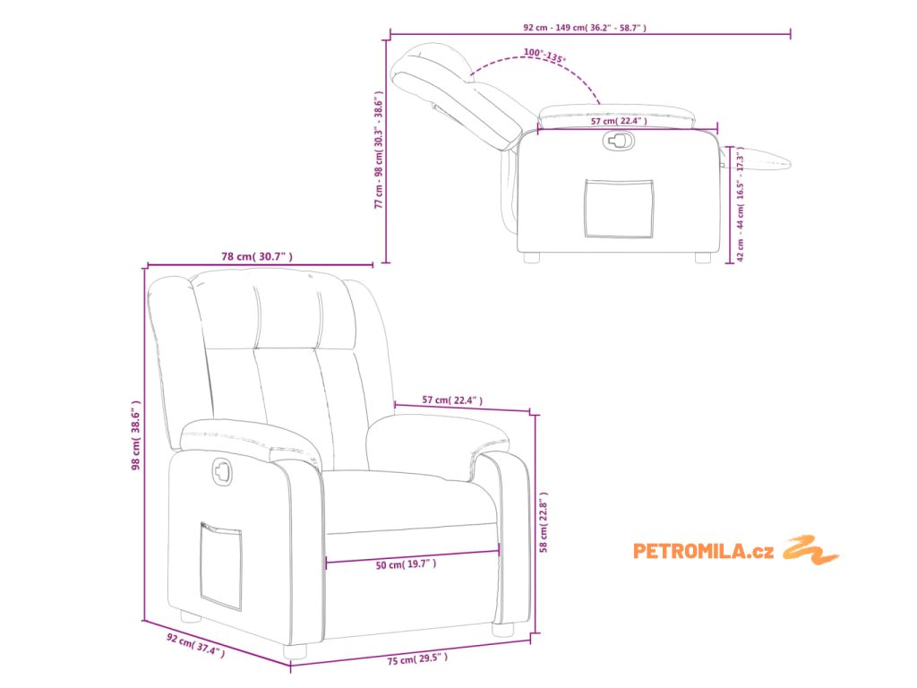 - Funkce ručního sklápění: Toto polohovací křeslo má na pravé straně páčku. Jednoduchým zatažením za páčku můžete ručně nastavit opěrku nohou a opěradlo do libovolné polohy podle svého pohodlí. Tato funkce umožňuje maximální náklon 135 stupňů. Opěradlo se navíc může snadným zatažením za páčku rychle vrátit do původní polohy.