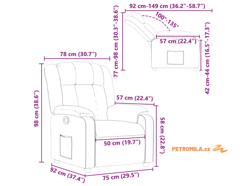 - Funkce ručního sklápění: Toto polohovací křeslo má na pravé straně páčku. Jednoduchým zatažením za páčku můžete ručně nastavit opěrku nohou a opěradlo do libovolné polohy podle svého pohodlí. Tato funkce umožňuje maximální náklon 135 stupňů. Opěradlo se navíc může snadným zatažením za páčku rychle vrátit do původní polohy.