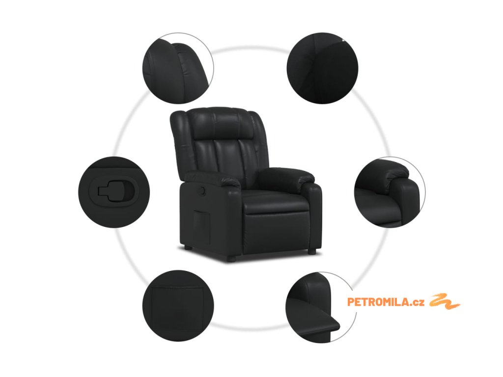 Polohovací křeslo černé umělá kůže