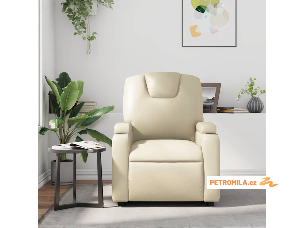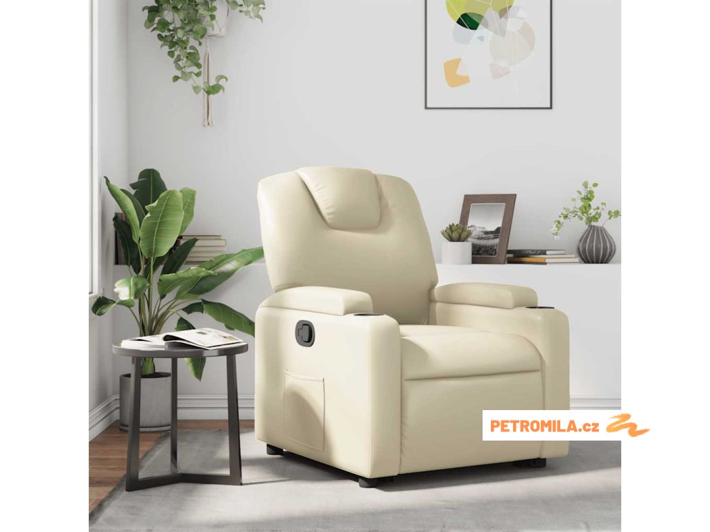 Polohovací křeslo krémové umělá kůže