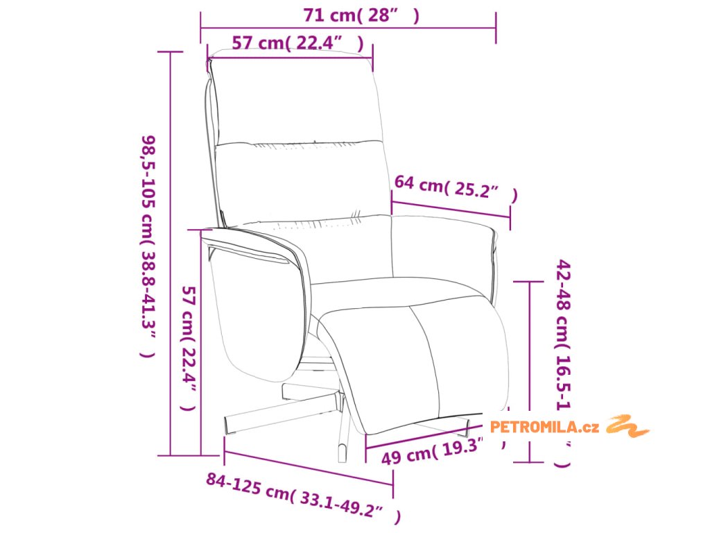 - Funkce manuálního sklápění: Polohovací křeslo je speciálně navrženo tak, aby se dalo sklápět a vy jste si mohli opěradlo i opěrku nohou sami nastavit, jak vám to bude nejlépe vyhovovat. Opěradlo lze naklonit v rozsahu 105 až 125 stupňů.