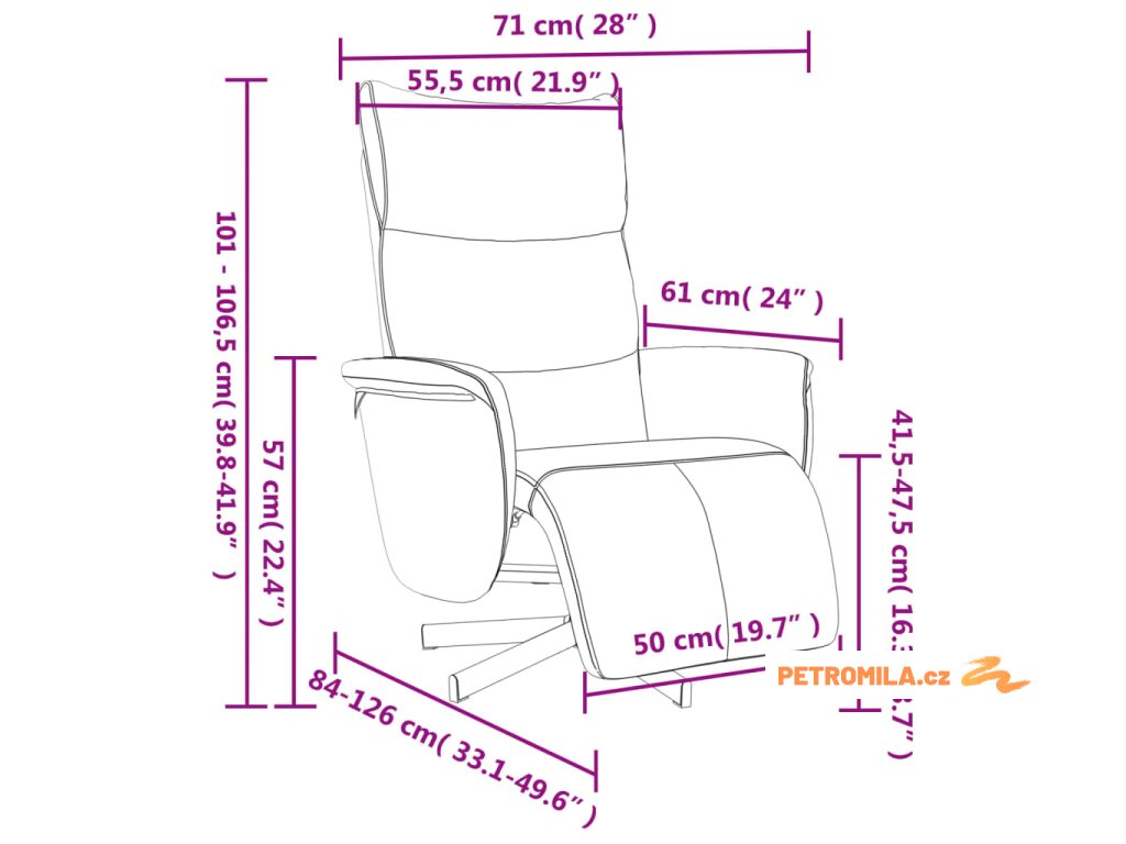 - Rozměry sklopeného křesla: 71 x 126 x 101 cm (Š x H x V)