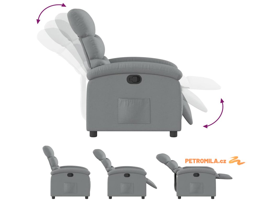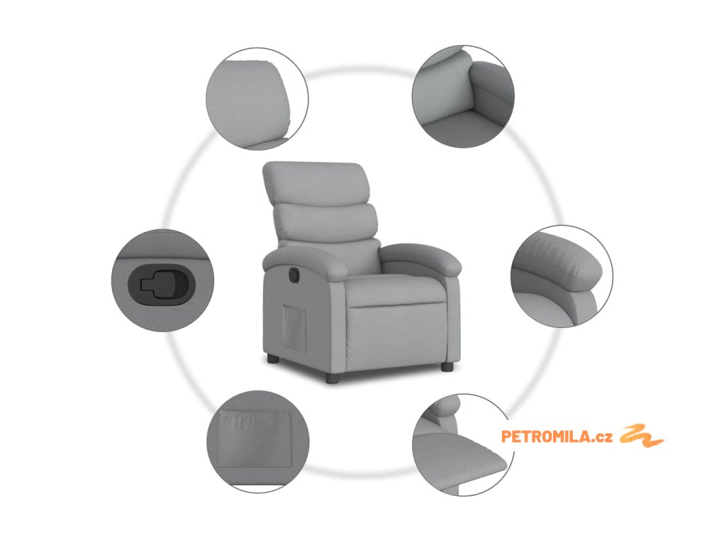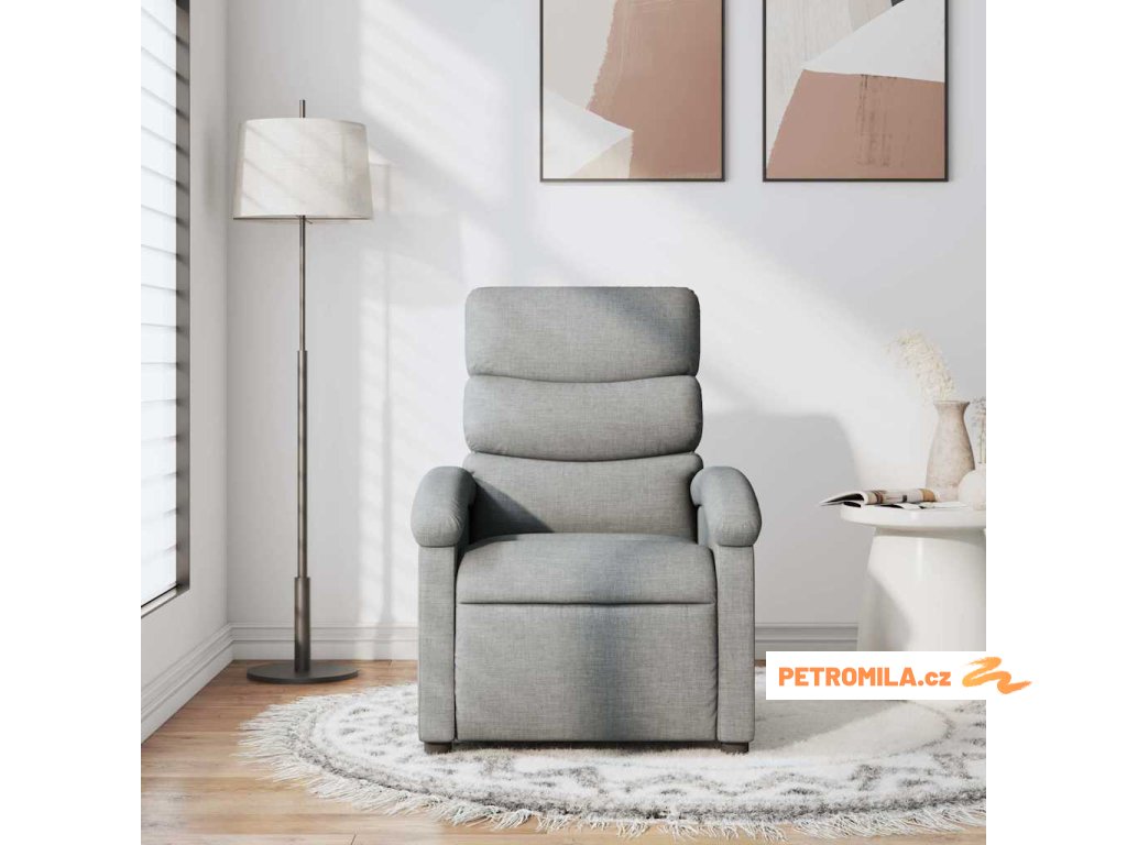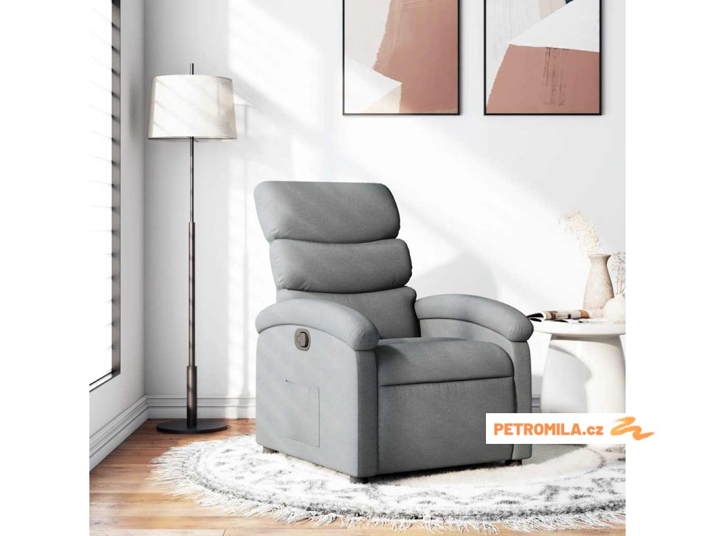 Polohovací křeslo světle šedé textil