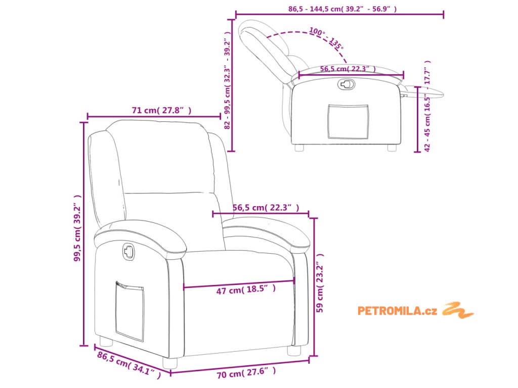 - Funkce ručního sklápění: Toto polohovací křeslo má na pravé straně páčku. Jednoduchým zatažením za páčku můžete ručně nastavit opěrku nohou a opěradlo do libovolné polohy podle svého pohodlí. Tato funkce umožňuje maximální náklon 135 stupňů. Opěradlo se navíc může snadným zatažením za páčku rychle vrátit do původní polohy.