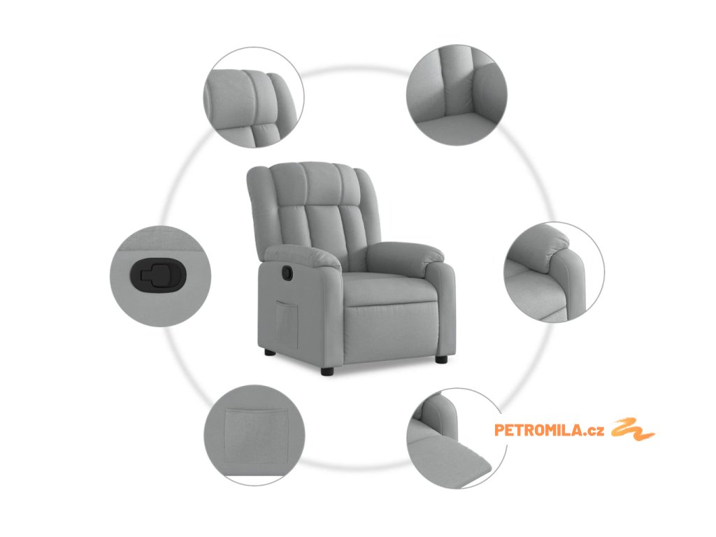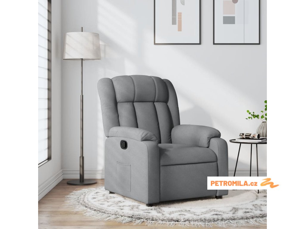 Polohovací křeslo světle šedé textil