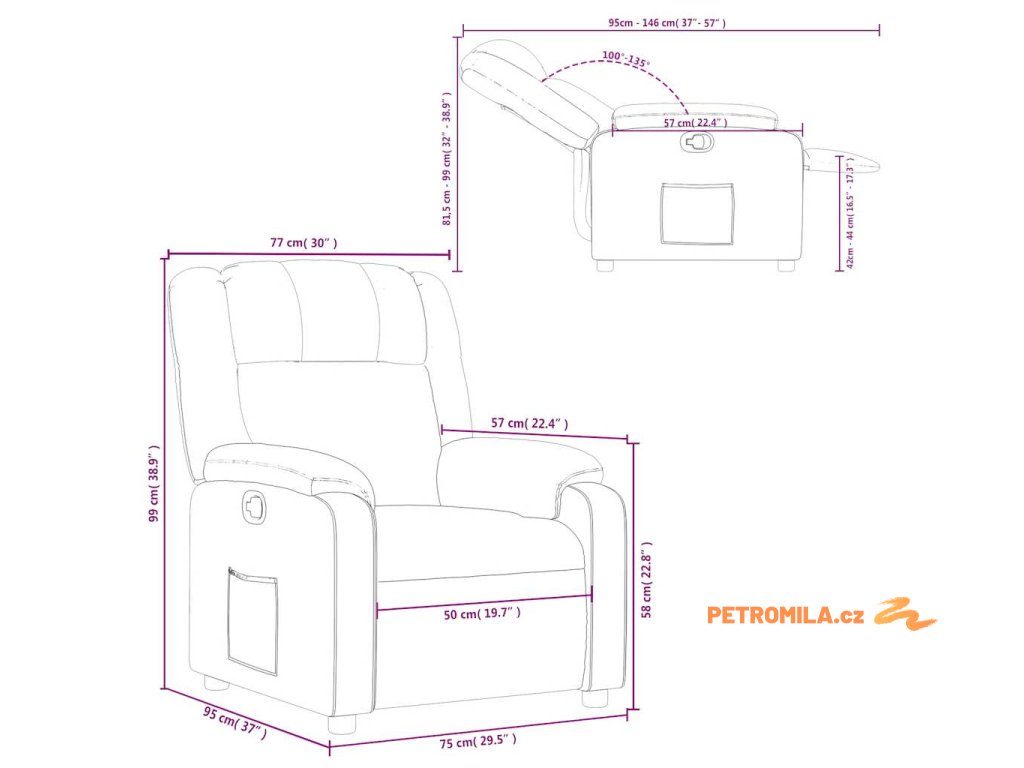 - Funkce ručního sklápění: Toto polohovací křeslo má na pravé straně páčku. Jednoduchým zatažením za páčku můžete ručně nastavit opěrku nohou a opěradlo do libovolné polohy podle svého pohodlí. Tato funkce umožňuje maximální náklon 135 stupňů. Opěradlo se navíc může snadným zatažením za páčku rychle vrátit do původní polohy.