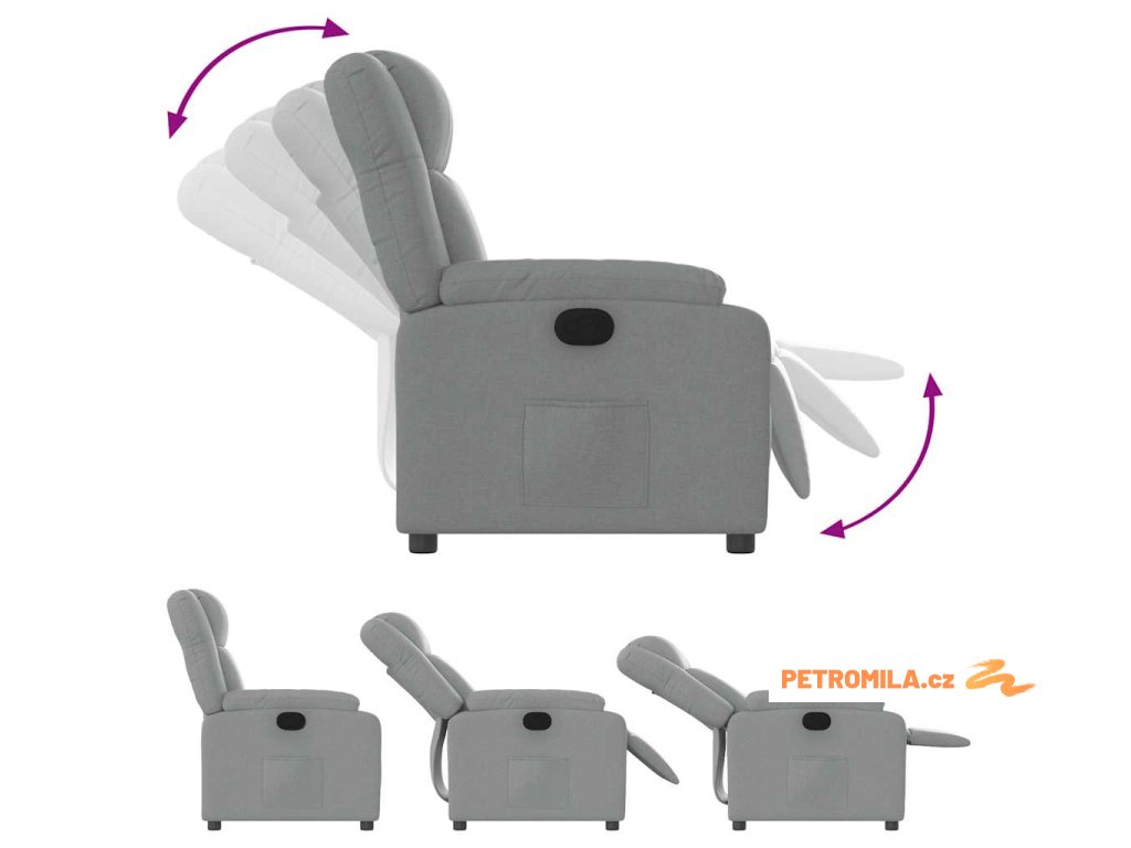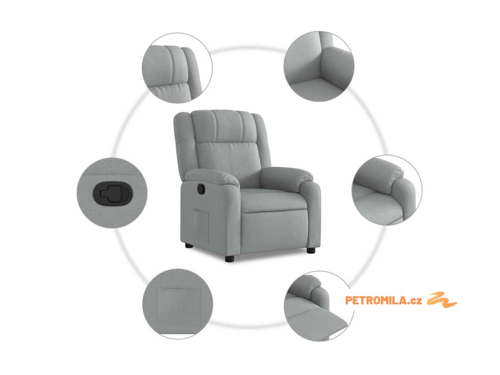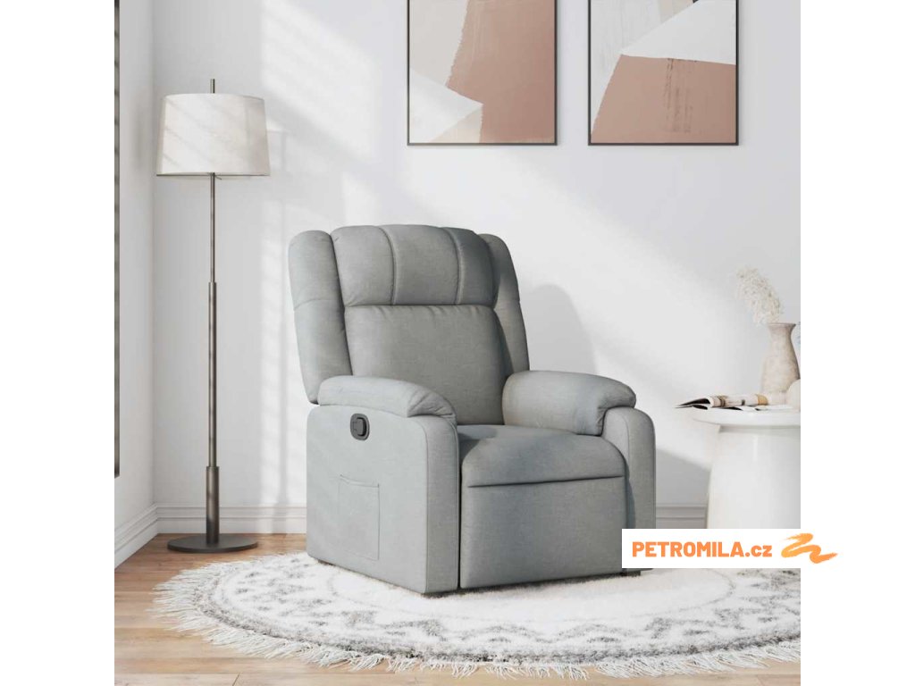 Polohovací křeslo světle šedé textil