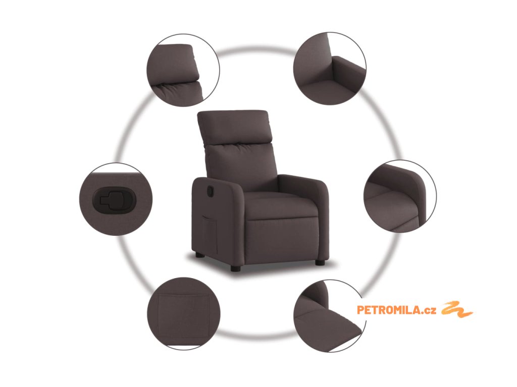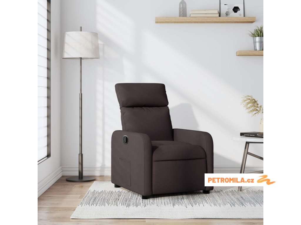 Polohovací křeslo tmavě hnědé textil