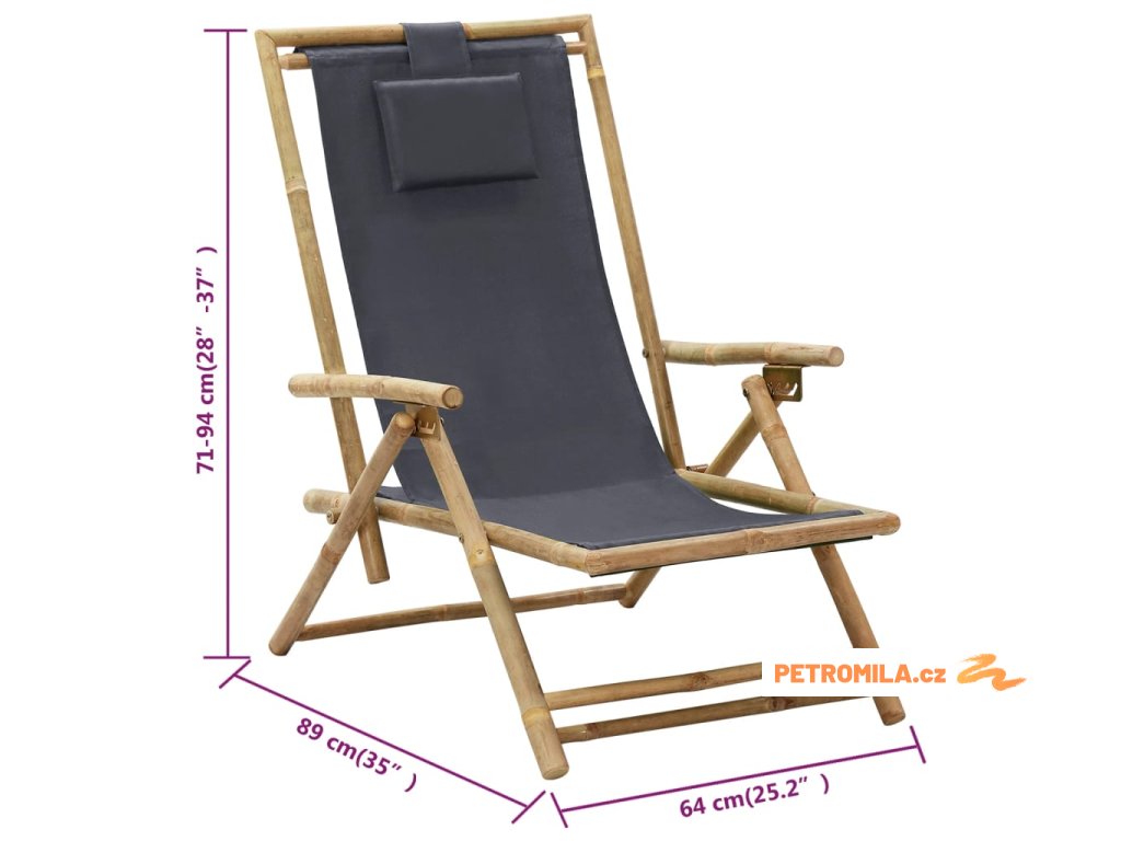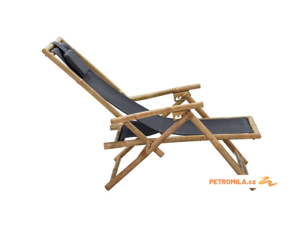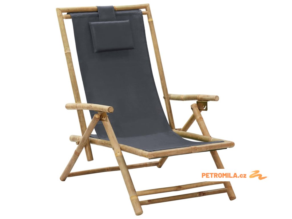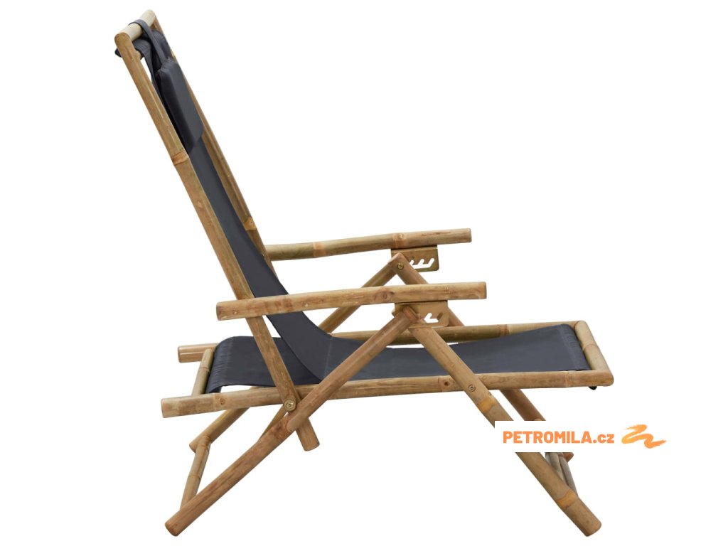 Polohovací relaxační křeslo tmavě šedé bambus a textil