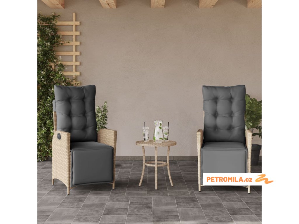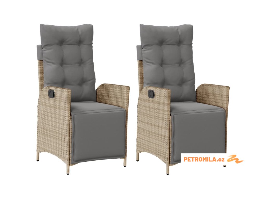Polohovací zahradní křesla 2ks s podnožkou mix béžové polyratan