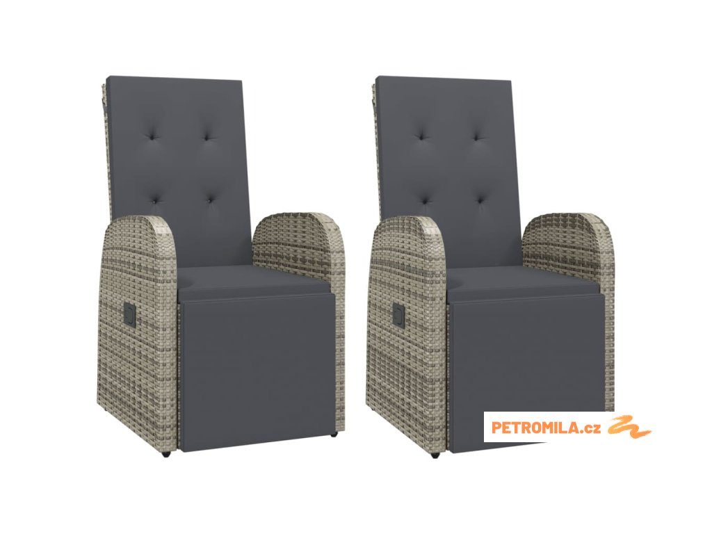 Polohovací zahradní židle s poduškami 2 ks šedé polyratan