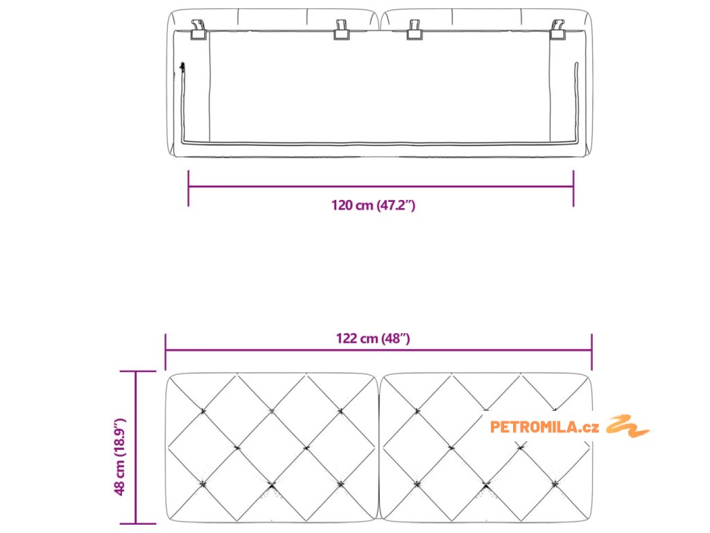 - Rozměry: 122 x 6 x 48 cm (D x Š x V)