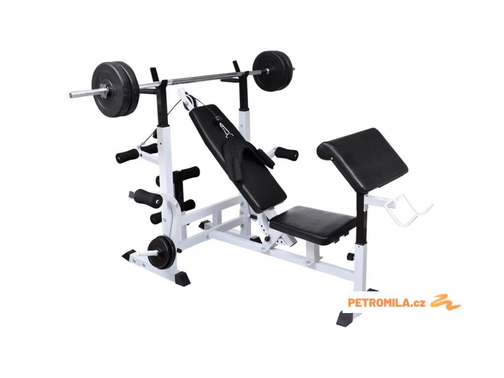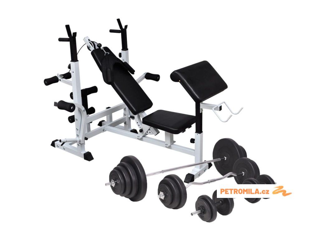 Tato posilovací lavice se stojanem a sadou činek barbell a dumbbell poskytuje ideální posilovací řešení pro začátečníky i pokročilé sportovce, a to jak pro procvičení jednotlivých svalů, tak pro kombinované posilování celých svalových skupin.