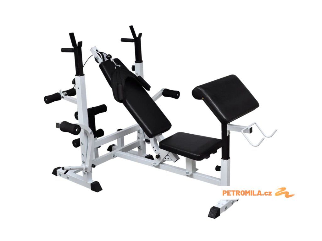 Bench press vám pomůže vytvarovat svaly na pažích a na hrudníku. Stanice curl a butterly pomáhají zpevnit ramena a paže, zatímco posilovač nohou pracuje na svalech vyšších a nižších stehen a kabelová kladka posiluje celou skupinu zádových svalů. Tato široká škála kombinací posilování a cvičení vám zajistí efektivní trénink celého těla. Různé možnosti nastavení umožňují přizpůsobit si lavici tak, aby vyhovovala vašim konkrétním potřebám. Robustní ocelová konstrukce lavice zajišťuje vaši bezpečnost při posilování. Pogumované protiskluzové nohy dodávají lavici na stabilitě.
