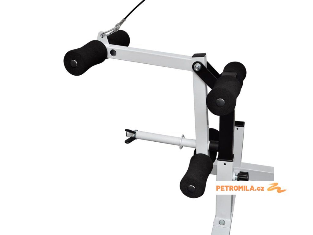 - Opěrka posilovače paží nastavitelná do 4 poloh: minimálně 77 cm, maximálně 92 cm