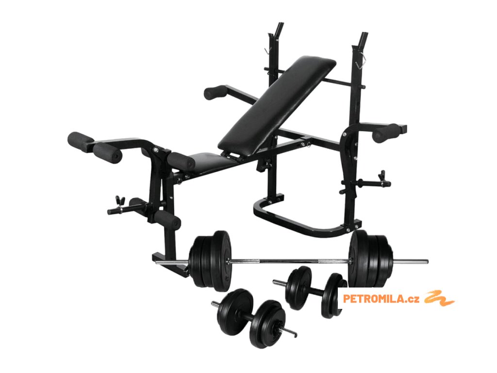 Posilovací lavice se stojanem na závaží a sadou činek 60,5 kg
