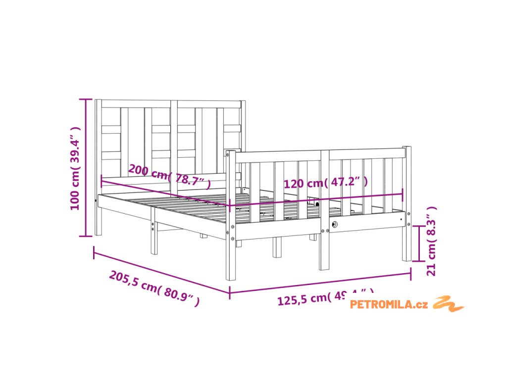 - Celkové rozměry postele: 205,5 x 125,5 x 100 cm (D x Š x V)