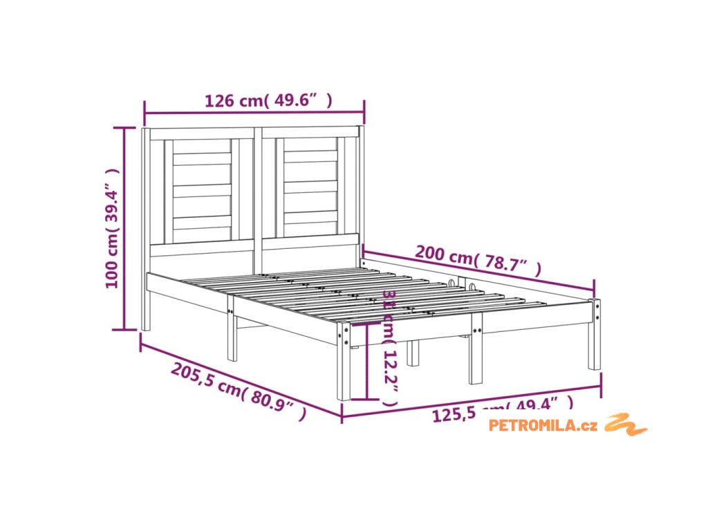 • Rozměry rámu postele: 205,5 x 125,5 x 31 cm (D x Š x V)