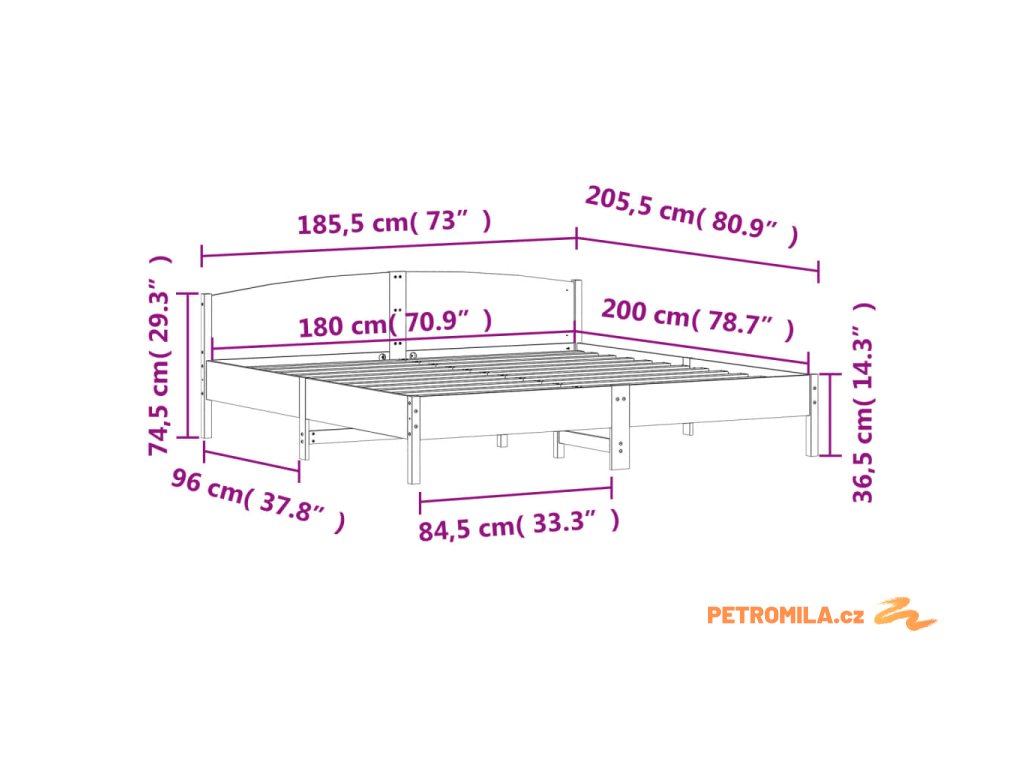 Postel bez matrace 180 x 200 cm masivní borovice