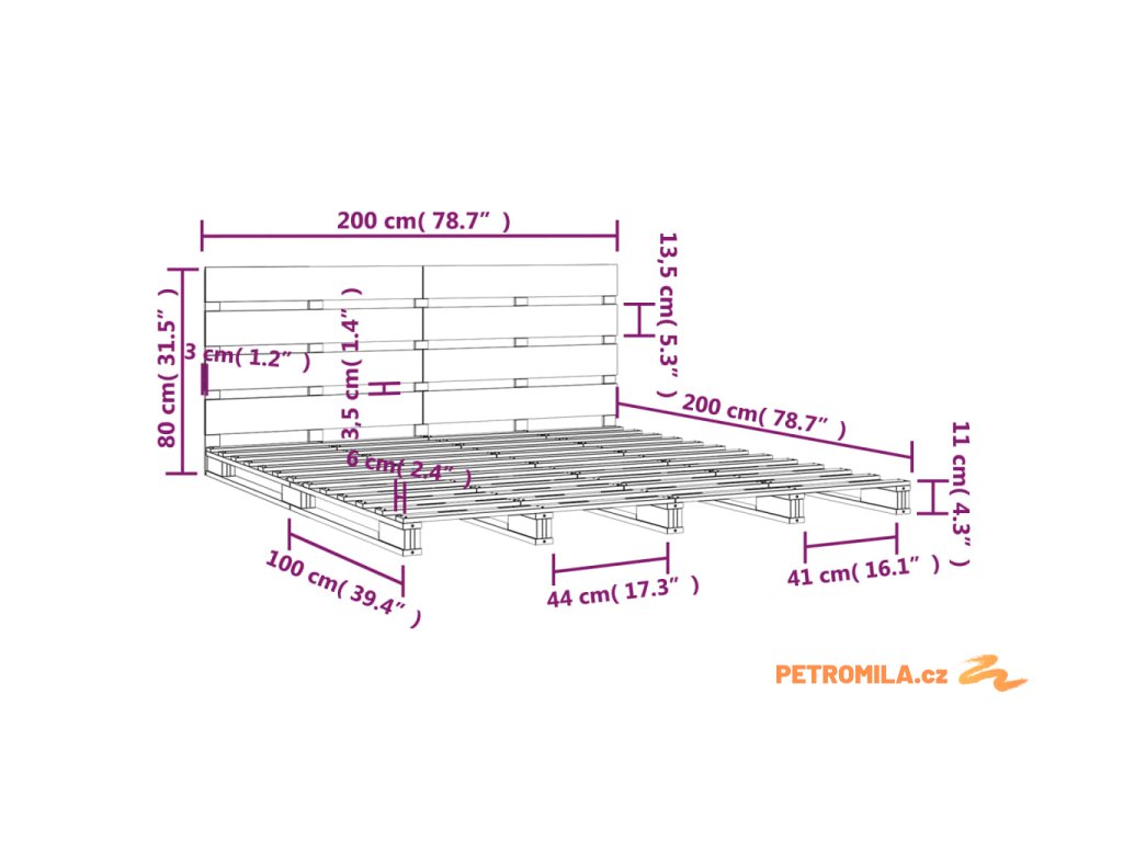 • Tento rám postele je vhodný pro matrace o rozměrech 200 x 200 cm.