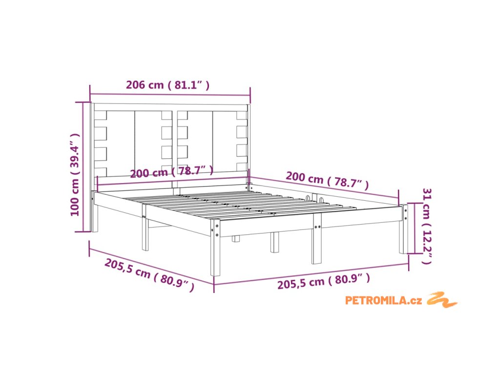 - Tento rám postele je vhodný pro matrace o rozměrech 200 x 200 cm.