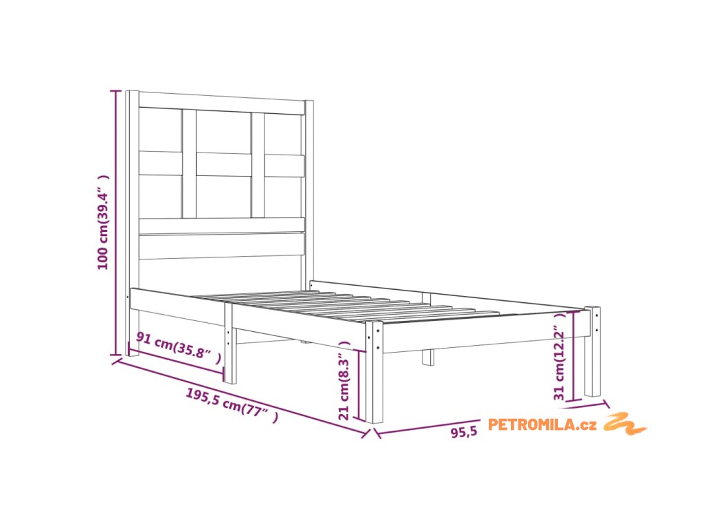 - Rozměry rámu postele: 195,5 x 95,5 x 31 cm (D x Š x V)
