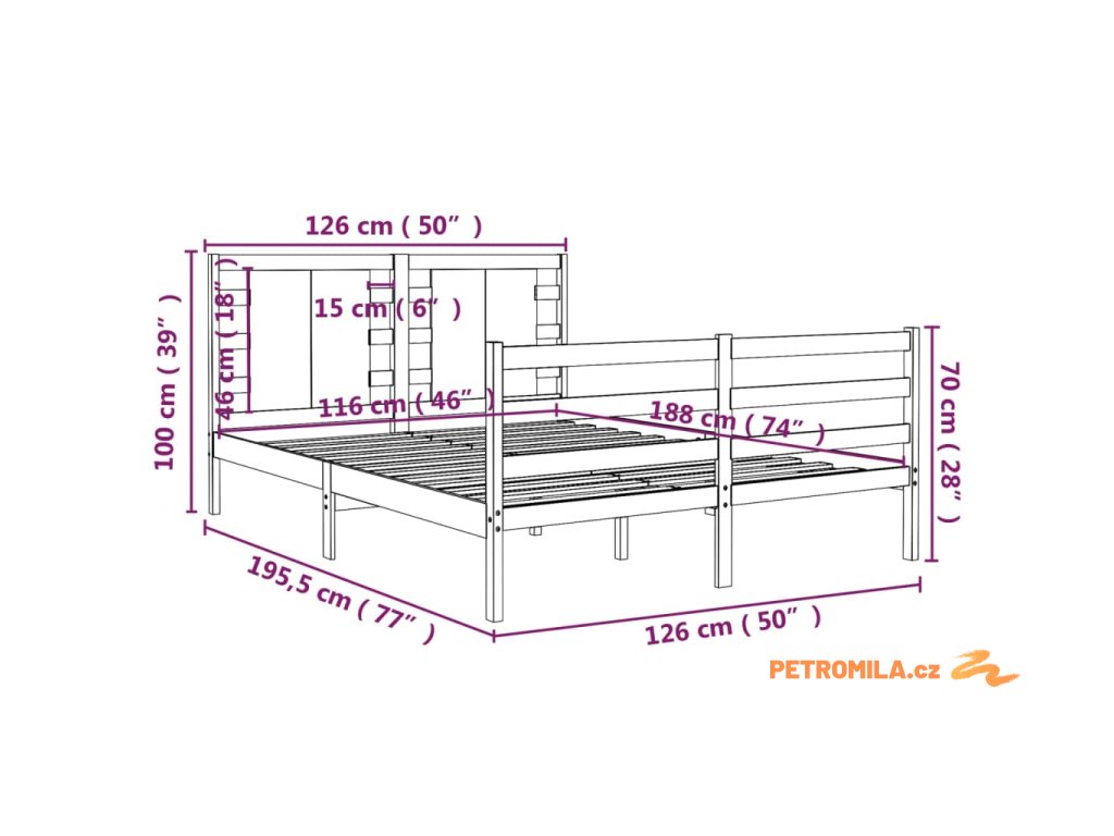 - Rozměry rámu postele: 195,5 x 126 x 70 cm (D x Š x V)