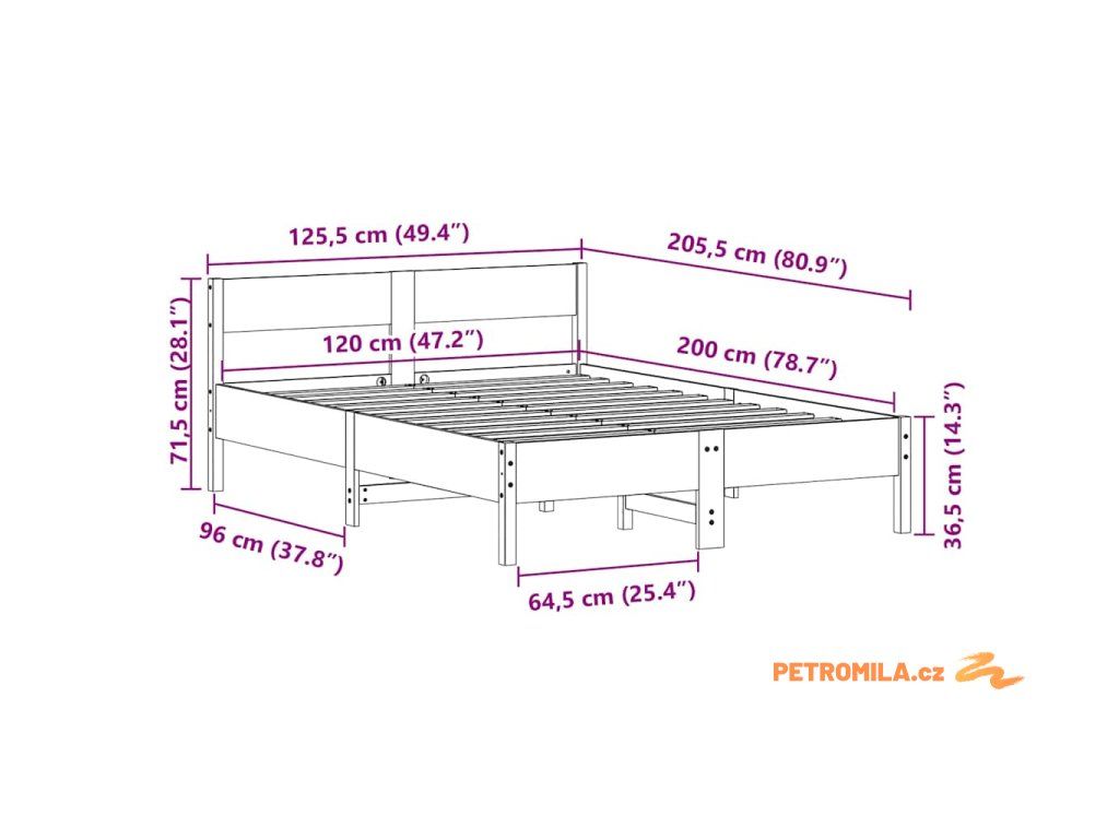 Postel bez matrace bílá 120 x 200 cm masivní borovice