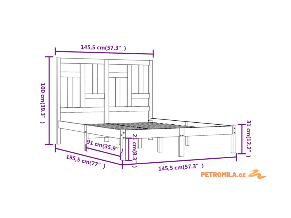 - Rozměry rámu postele: 195,5 x 145,5 x 31 cm (D x Š x V)