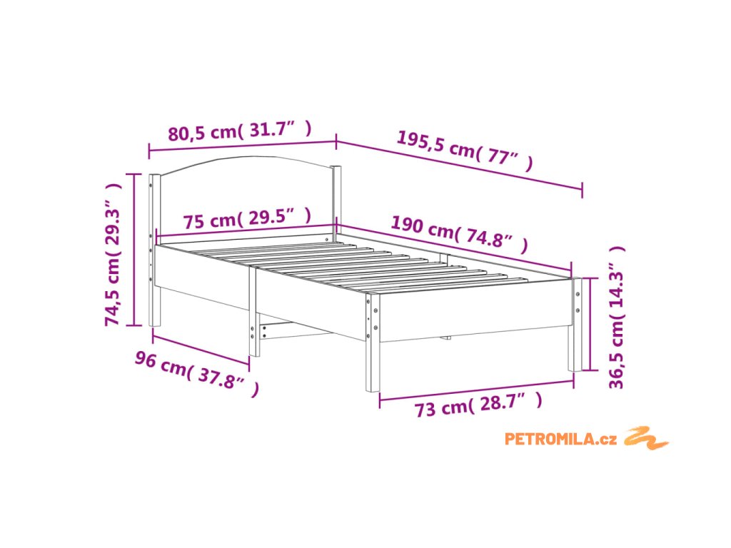 Postel bez matrace bílá 75 x 190 cm masivní borovice