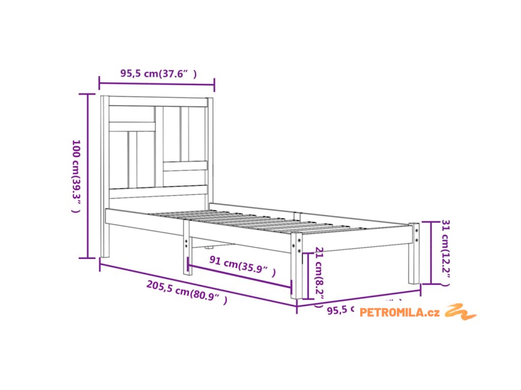 - Rozměry rámu postele: 205,5 x 95,5 x 31 cm (D x Š x V)