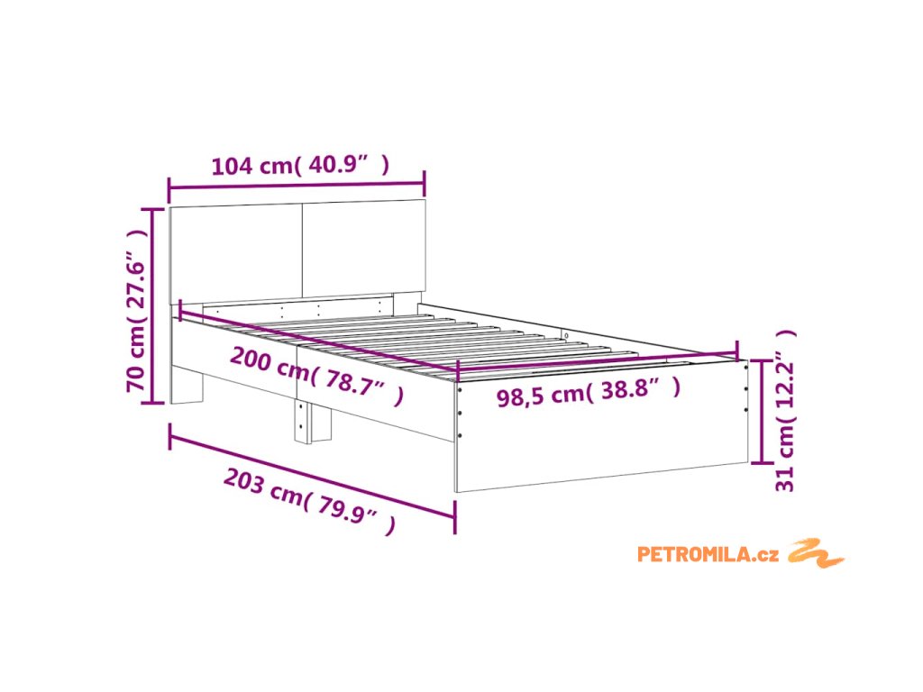 Postel bez matrace s čelem dub sonoma 100 x 200 cm
