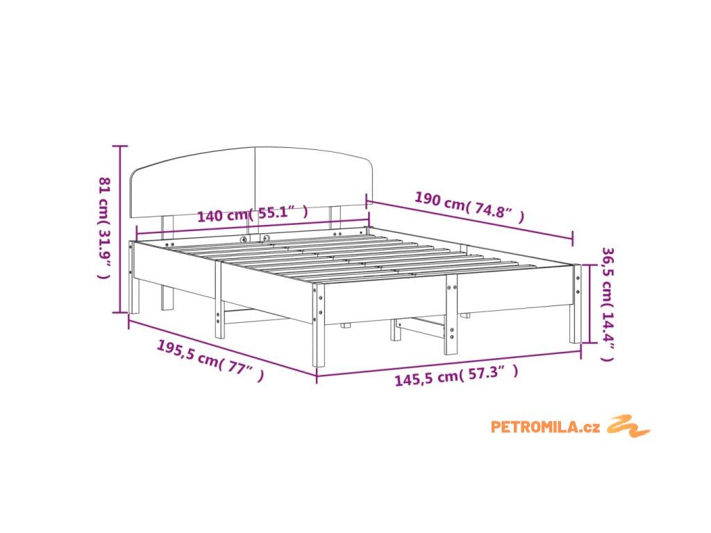 Postel bez matrace voskově hnědá 140 x 190 cm masivní borovice