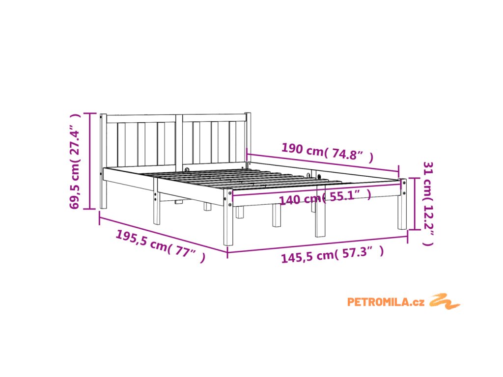 Postel bez matrace voskově hnědá 140 x 190 cm masivní borovice