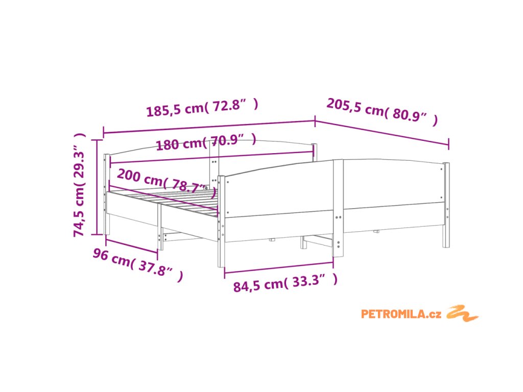 Postel bez matrace voskově hnědá 180 x 200 cm masivní borovice